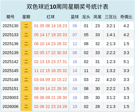 其中奇偶比为4:2,三区比为2:1:3,龙头凤尾组合为06+33。