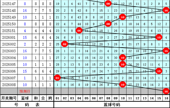 蓝球分析:前年第009期蓝球奖号为06,开出0路蓝球,现在1路蓝球轮空3年,本年同时合乎关爱1路蓝球回补,看好号码16。